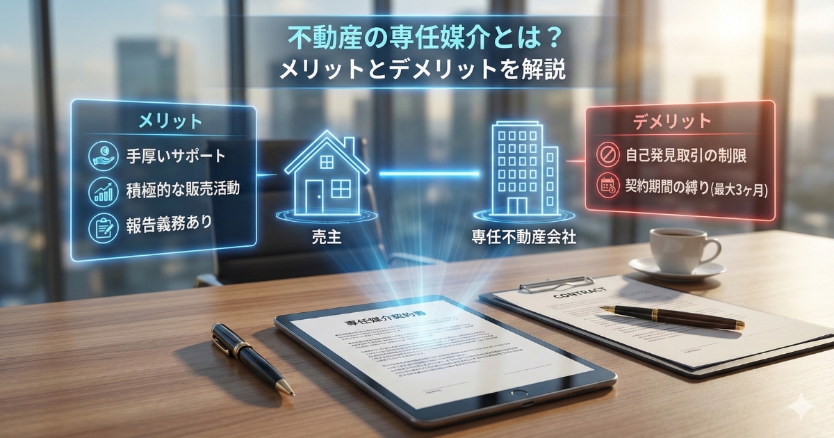 専任媒介契約は、売主が1社の不動産会社のみに媒介を依頼する契約形態です。他の不動産会社に重ねて依頼することはできませんが、完全に縛られるわけではありません。